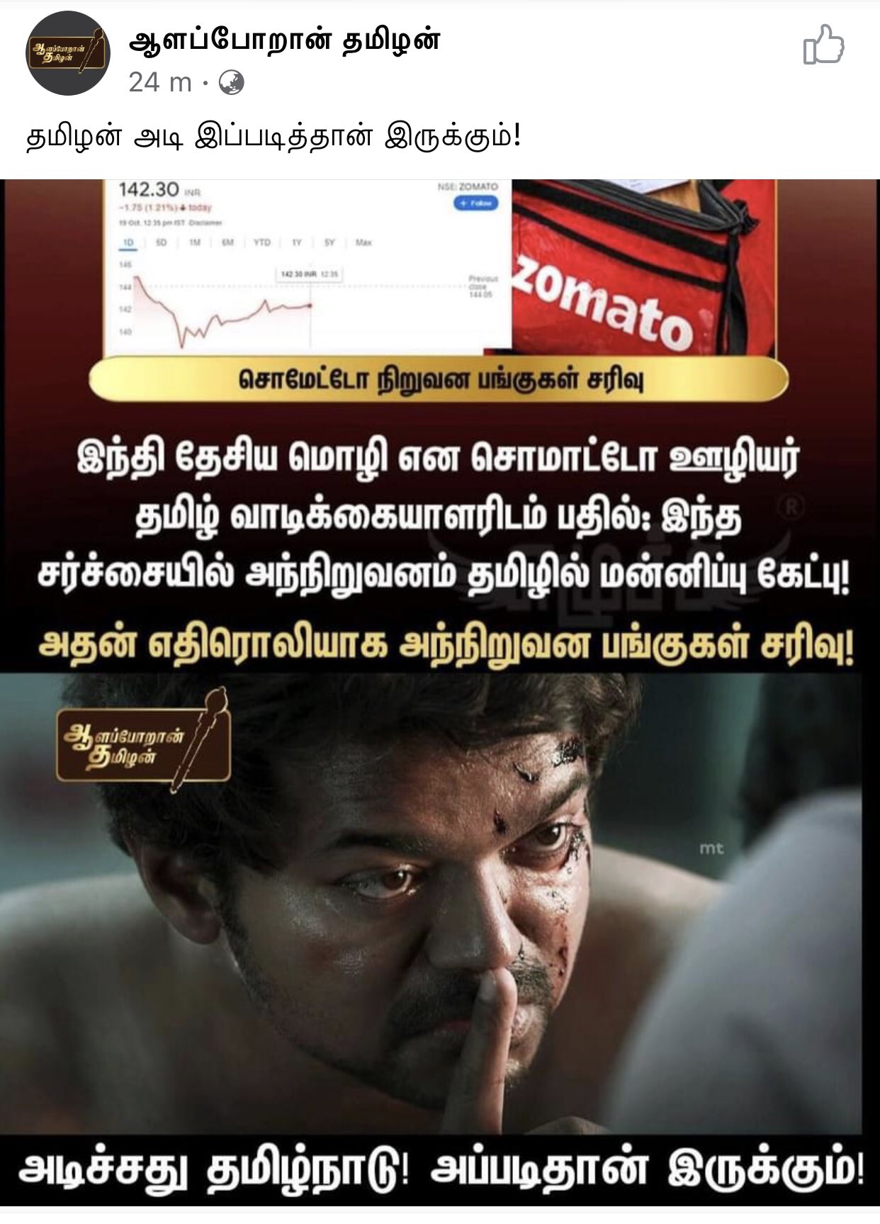 Tinku ಟ ಕ On Twitter Lie Zomato S Stock Price Crashed Since An Employee Said Hindi Is Our National Language Truth People Gave A Rat S Back Side Https T Co Ekt6khk4rw Twitter